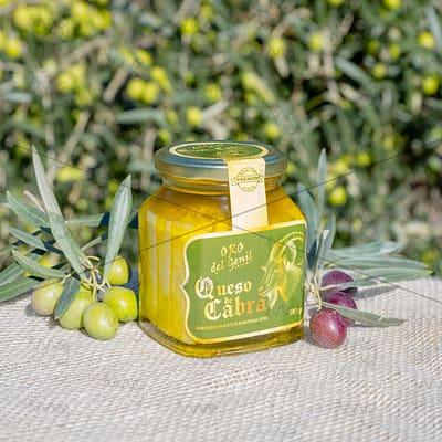 Quesos de cabra y oveja elaborados con recetas tradicionales y sumergidos en AOVE Oro del Genil tras 4 meses de curación.